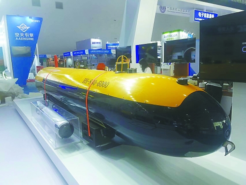 相比公眾相對熟悉的無人機(jī)和無人車,無人船和無人潛航器的知名度略低,但本屆珠海航展上展出的相關(guān)裝備具備相當(dāng)高的水平。例如HS-880-6000型自主式水下航行器(AUV)就是國內(nèi)首型搜救型無人潛航器。它的最大工作深度達(dá)6000米,能以3節(jié)的速度連續(xù)航行24小時(shí),配備有深水遇險(xiǎn)目標(biāo)高分辨低照度照明系統(tǒng)、聲信標(biāo)定向引導(dǎo)聲吶、水聲探測側(cè)掃聲吶等,具備工作水深范圍寬、載荷能力大、續(xù)航力長、搜尋探測能力強(qiáng)等特點(diǎn),可對深海目標(biāo)全自主精細(xì)搜尋、探測、定位,執(zhí)行深海水下目標(biāo)搜尋探測和海洋科學(xué)研究任務(wù)。另一款“守望者”無人潛航器個(gè)頭小巧,配備有光學(xué)探頭、戰(zhàn)斗部和通信設(shè)備,可以自動靠近水中或海底目標(biāo)進(jìn)行觀測、毀傷目標(biāo),用于執(zhí)行反水雷、排障、海底管道巡檢等任務(wù)。