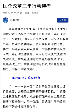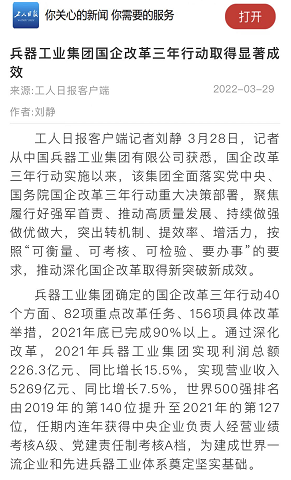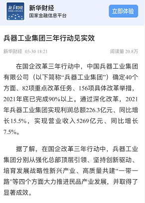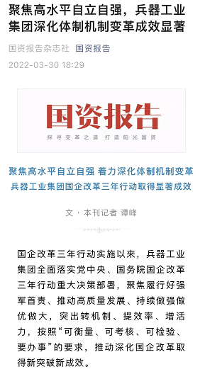 國資委網(wǎng)站:【對標世界一流 央企加速奔跑】兵器工業(yè)集團國企改革三年行動成效顯著