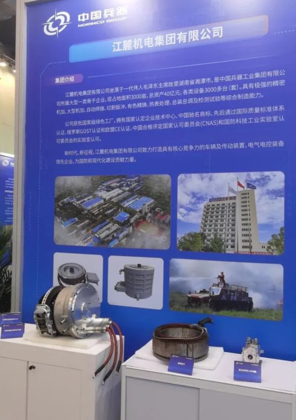 江麓集團展出的自主研發(fā)的多合一輪轂減速永磁同步電機,具有輕量化、集成化、模塊化和高功率密度特征,并安裝國內(nèi)領(lǐng)先的自主創(chuàng)新12層電磁扁線核心定子組件。該類電機最高效率高達98%,有效提升特種新能源電驅(qū)動裝備驅(qū)動綜合性能,并匹配應用于特種裝甲裝備、無人裝備以及新能源智慧礦用車等。