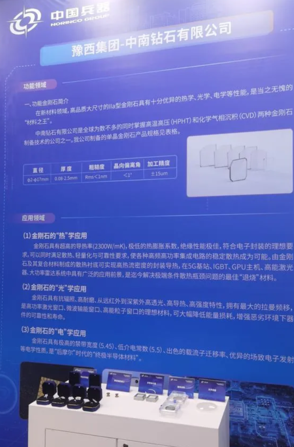 豫西集團中南鉆石展出的高品質(zhì)、大尺寸lla型金剛鉆石具有十分優(yōu)異的熱學、光學、電學性能,是新材料領(lǐng)域當之無愧的“鉆石之王”。