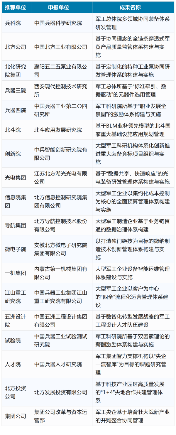兵器工業(yè)集團2025年度管理創(chuàng)新成果獲獎名單發(fā)布