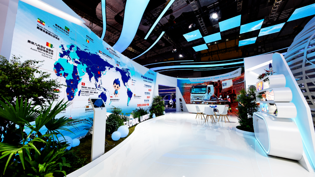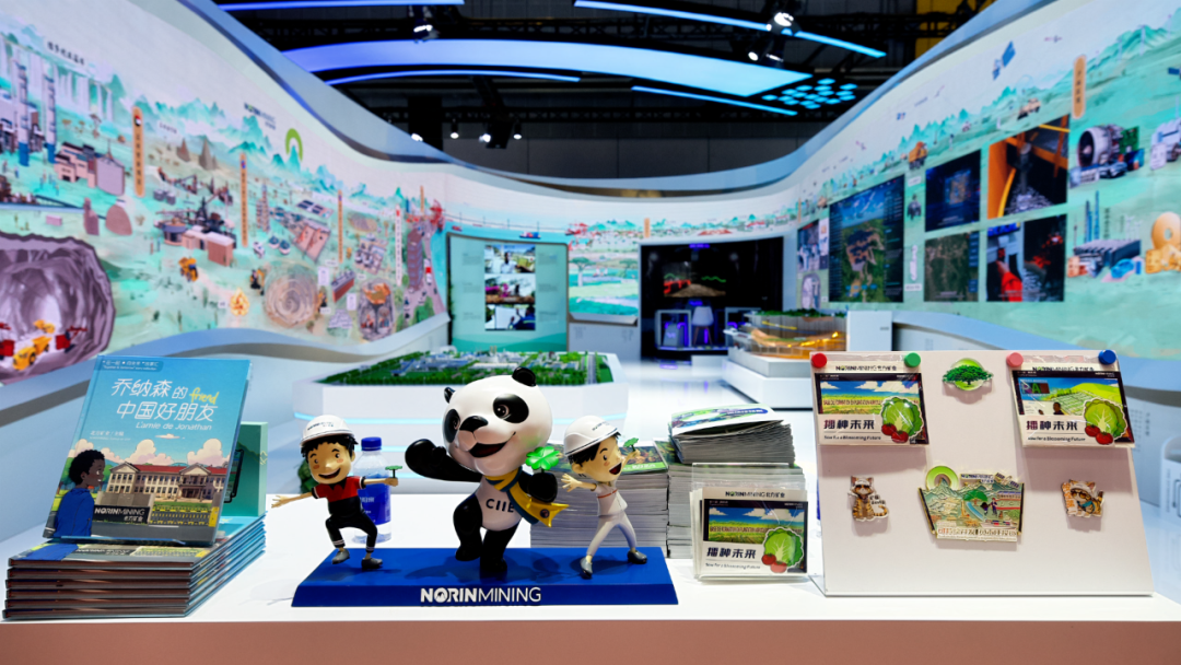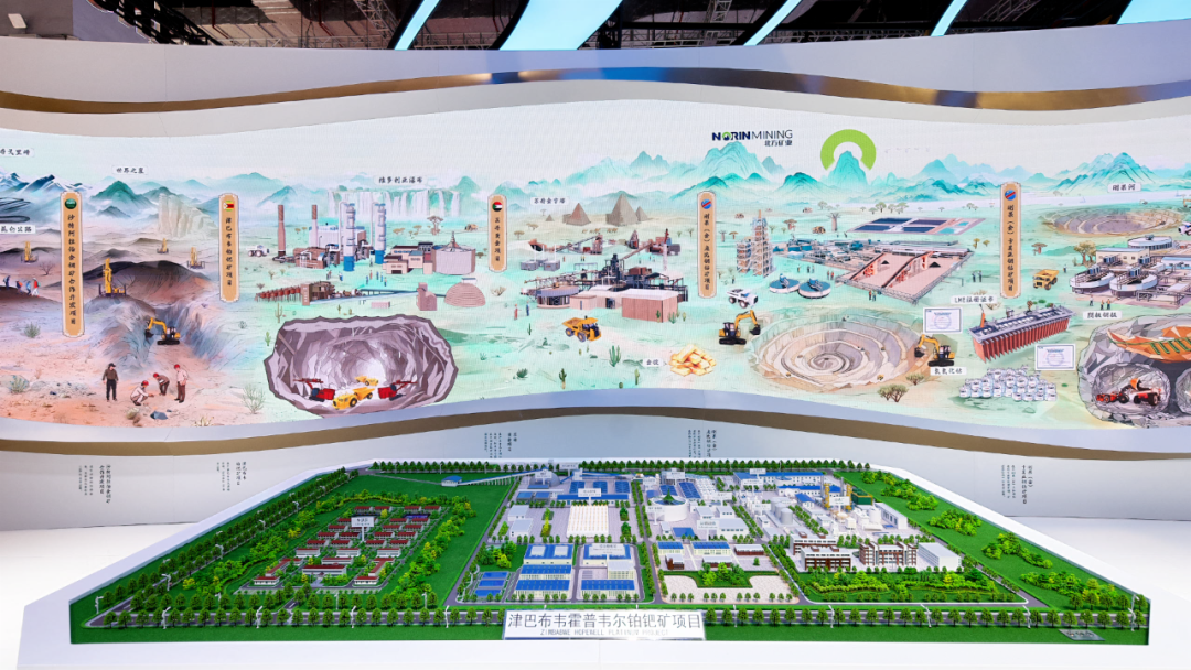 北方礦業(yè)組展展區(qū)以《千里江山圖》為創(chuàng)意,生動呈現(xiàn)了六個海外項目及礦產品貿易業(yè)務,全方位展示了智慧礦山核心構成,演繹“綠水青山就是金山銀山”的礦業(yè)新篇。