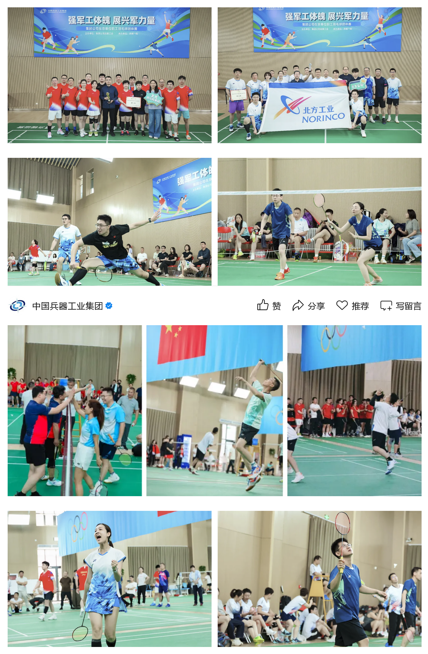 本次羽毛球團體賽,是集團公司深化開展群眾性體育活動,貫徹落實“健康中國”戰(zhàn)略的生動實踐,也是打造“健康兵器”的積極行動,進一步促進在京單位職工溝通交流、增進感情、加強團結,激發(fā)了廣大職工的向心力凝聚力戰(zhàn)斗力。下一步,集團公司將繼續(xù)組織開展形式多樣的文體活動,豐富職工文化生活,塑造職工健康體魄,為加快推動兵器工業(yè)高質量發(fā)展作出新的更大貢獻!